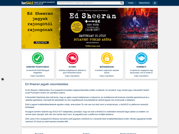 A fanSALE az EVENTIM saját, rajongótól rajongónak szóló jegyértékesítési platformja, ahol a jegyek valós értéken cserélnek gazdát. Küldetésünk, hogy a valódi jegyek valódi rajongókhoz kerüljenek. Az EVENTIM elsődleges csatornáin keresztül vásárolt jegyek többsége továbbértékesíthető a fanSALE-en – kizárólag az eredeti vásárlási áron, felár nélkül.